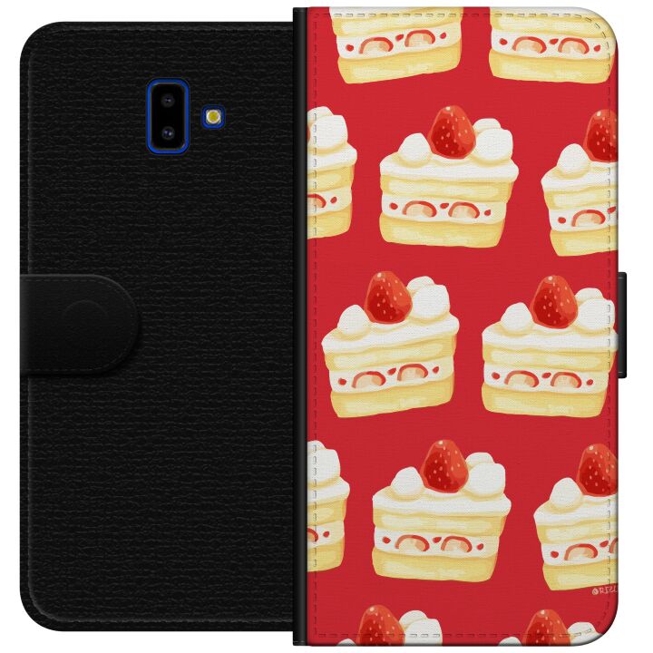 Plånboksfodral för Galaxy J6+ med Tårta -design. Fodralet kombinerar stil och funktion – ett slitstarkt mobilskal som skyddar mot repor och stötar samt praktiska kortfack på insidan.
