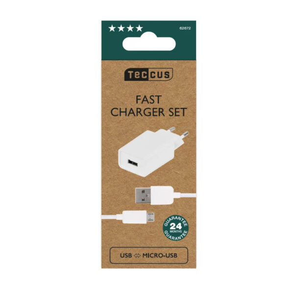 Teccus Laddare 2.1A + Micro-USB kabel 2.1A Vit