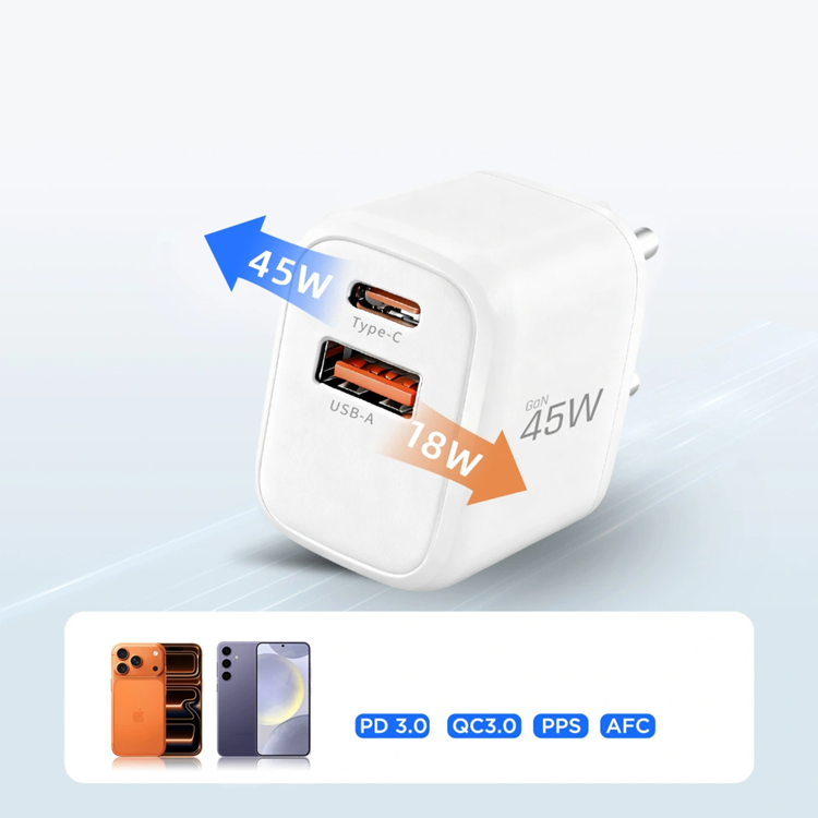 Tech-Protect NCA45W-GaN är en kraftfull och kompakt väggladdare utvecklad för dig som vill ladda två enheter samtidigt utan att kompromissa med hastighet eller säkerhet. Med modern GaN-teknik får du hög prestanda i ett litet format, perfekt för hemmet, kontoret och resor. Den smarta konstruktionen gör att du kan ersätta flera laddare med en enda pålitlig lösning som alltid levererar stabil energi.