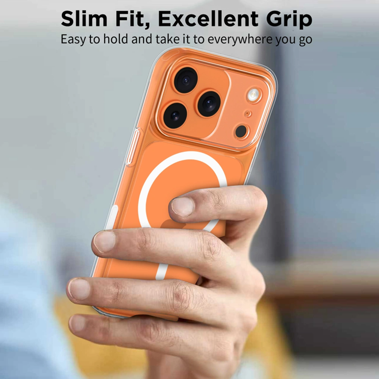 Tack vare det inbyggda MagSafe-systemet fungerar skalet sömlöst med magnetiska tillbehör som laddare, hållare och plånböcker. Den precisa passformen omsluter mobilen på ett säkert sätt, medan upphöjda kanter runt skärmen och kameran ger extra skydd mot repor och stötar. Den eleganta ramen runt linsen förstärker inte bara skyddet, utan ger även en exklusiv premiumkänsla som lyfter mobilens utseende.