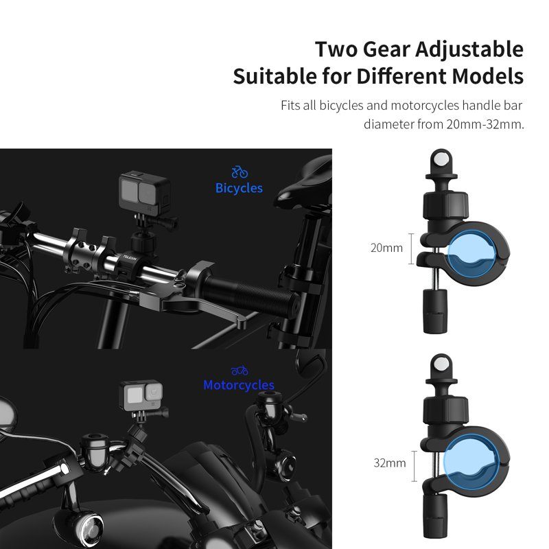 TELESIN DJ-HBM-001 är det perfekta rotationsfästet för din GoPro. Med 360° rotation och justerbar rördiameter kan du enkelt fånga fantastiska bilder från olika vinklar. Fästet är stabilt och skakfritt, vilket gör det idealiskt för både motorcyklar och cyklar.