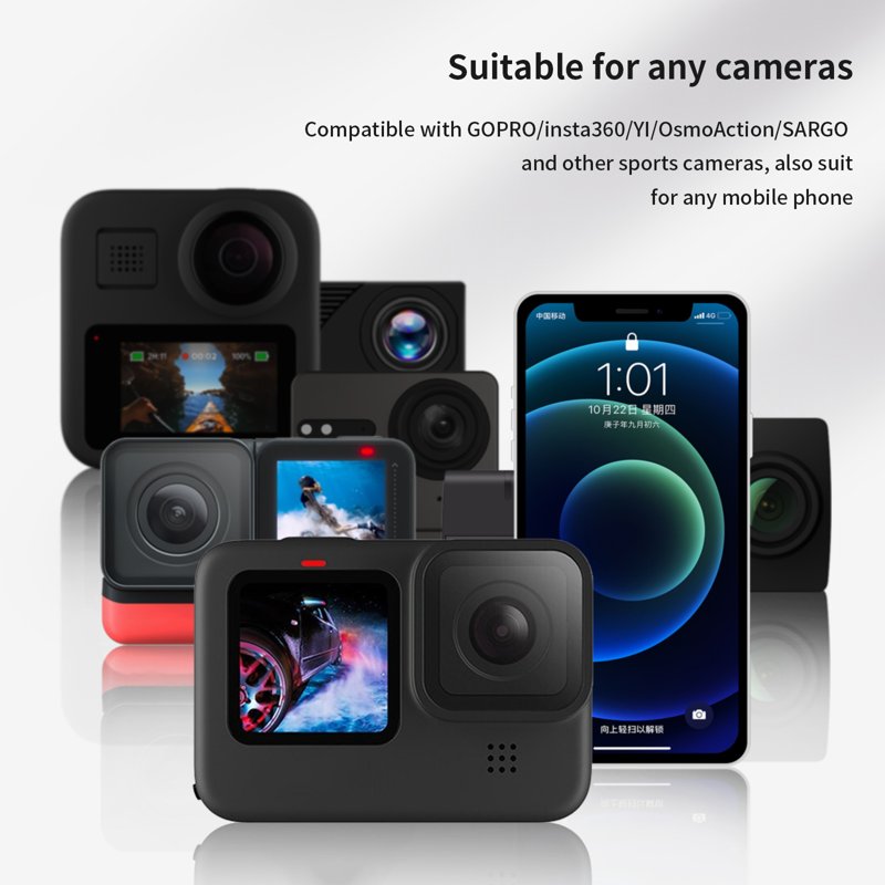 - Kompatibel med GoPro, Insta360, Yi, Osmo Action och andra sportkameror samt mobiltelefoner