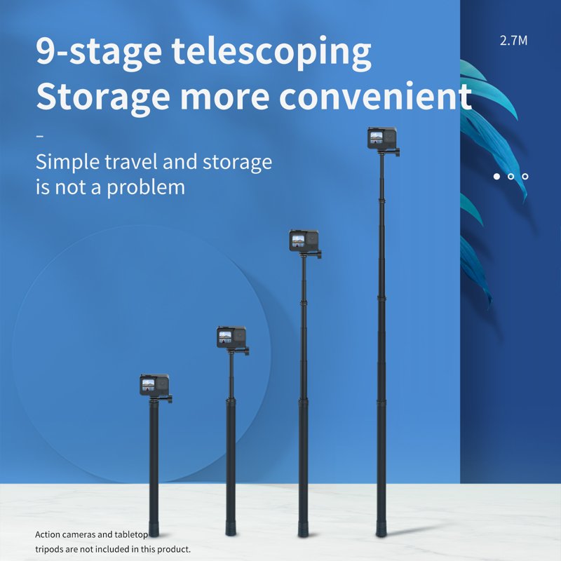 TELESIN GP-MNP-270-2 är en justerbar monopod i kolfiber som sträcker sig upp till 2,7 meter. Den är perfekt för att fånga imponerande selfies och videor från nya vinklar. Med sin hållbara konstruktion och smarta design är den ett utmärkt val för alla actionkameror.