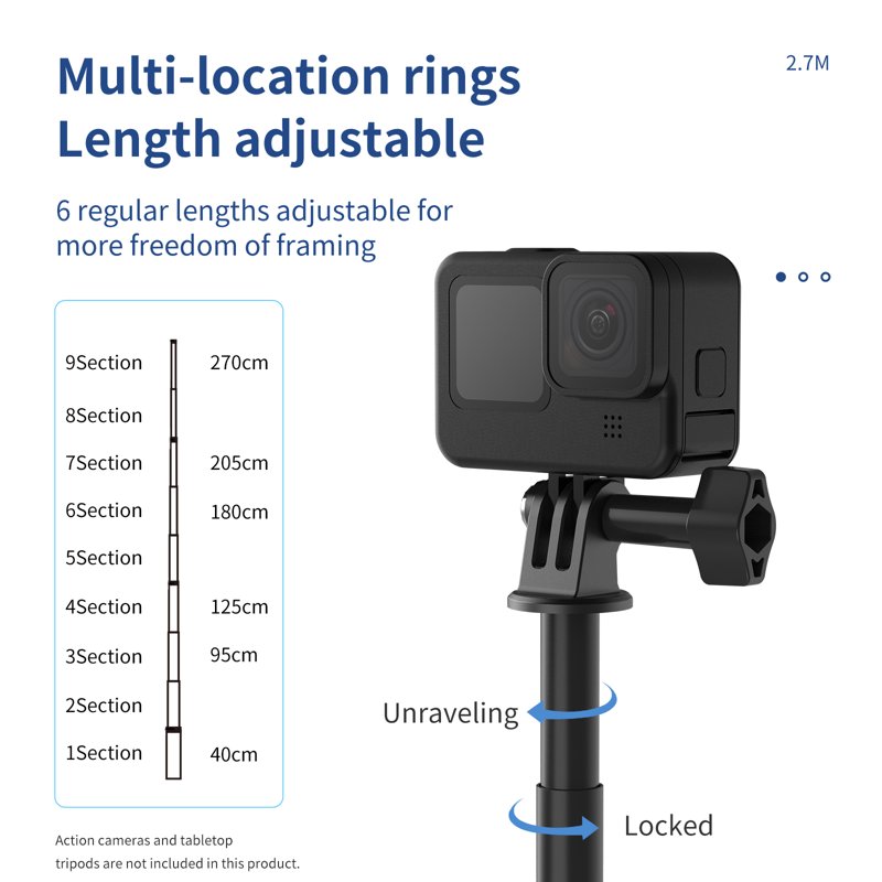 • Upp till 2,7 meter för fantastiska selfies och videor