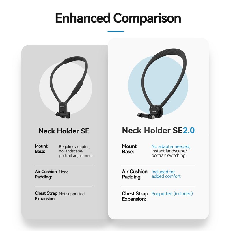 TELESIN S2-HNB-09 SE 2.0 är det perfekta nackfästet för din actionkamera. Fånga dina äventyr från första personens perspektiv. Med en smart design och hög stabilitet kan du enkelt filma både horisontellt och vertikalt. Detta fäste är byggt för att hålla och passar de flesta actionkameror.