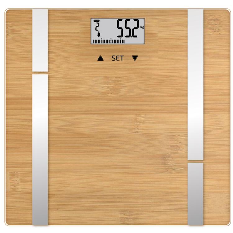 Upptäck Bamboo Fit, vågen som kombinerar elegans, precision och hållbarhet. Med sin stora bricka i naturlig bambu och linjära elektroder ger den inte bara en modern, naturlig estetik i ditt badrum, utan erbjuder också exakt analys av kroppsvikten och kroppssammansättningen. Bamboo Fit mäter muskel-, fett-, vatten- och benmassa, beräknar BMI, visceralt fettindex och basal ämnesomsättning (BMR), samt har ett särskilt atletläge för dig som tränar. Den stora LCD-skärmen och plattan på 30x30 cm ger optimal användarvänlighet, och 10 användarminnen med automatisk igenkänning gör den perfekt för hela familjen.