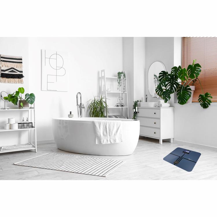 Elegant fransk design: Stor platta i svart glas, bakgrundsbelyst display och osynliga elektroder som smälter in i ditt badrum