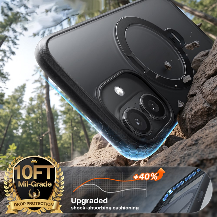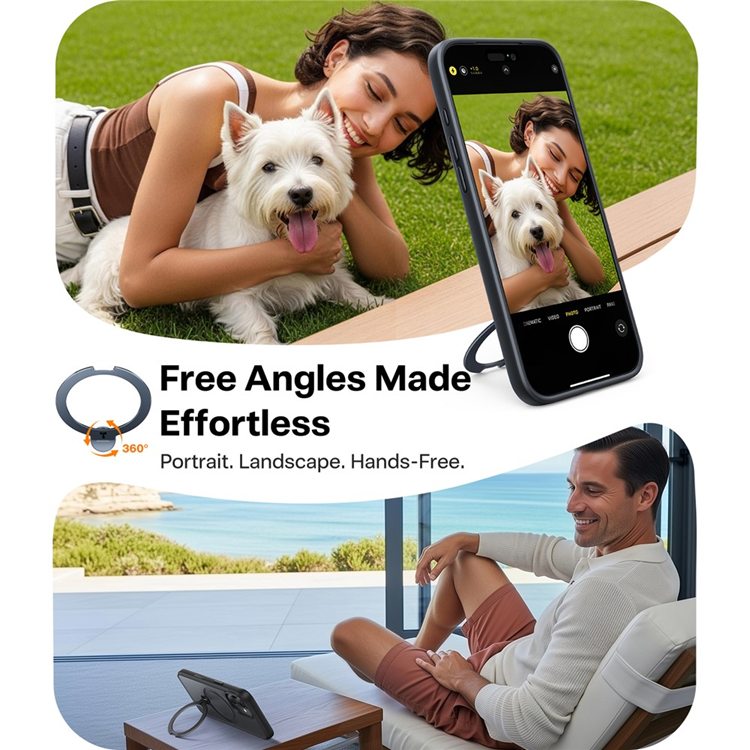 360° roterande ringhållare – Ger stabilt grepp och fungerar som ett kickstand för handsfree-visning i alla vinklar.