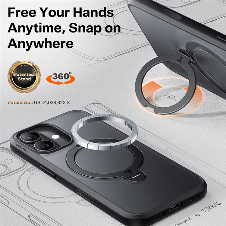 TORRAS iPhone 17 Mobilskal MagSafe Rotating Kickstand TPU + PC - Svart