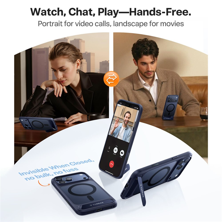 TORRAS iPhone 17 Pro Max Mobilskal MagSafe Kickstand TPU + PC - Mörkblå