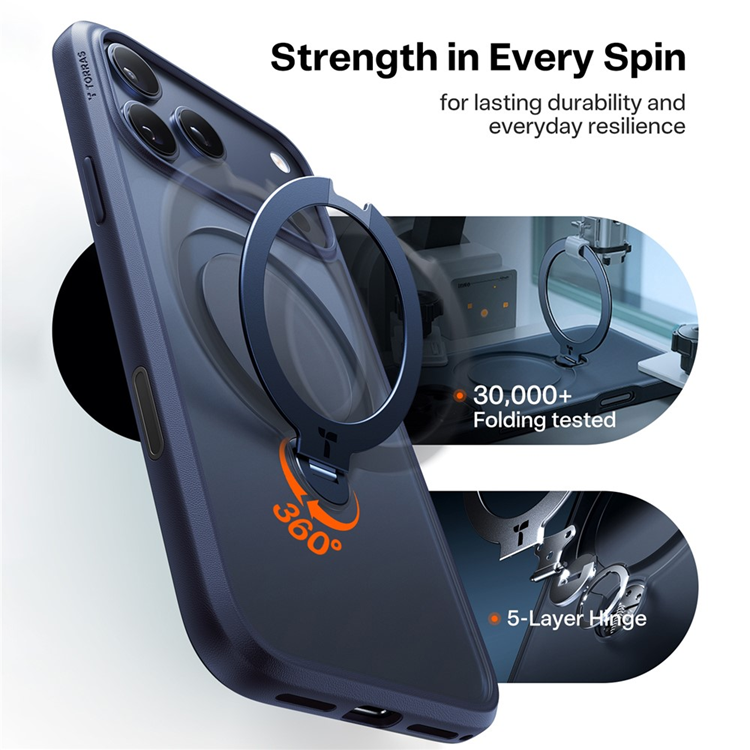 TORRAS iPhone 17 Pro Max Mobilskal MagSafe Rotating Kickstand TPU + PC - Mörkblå