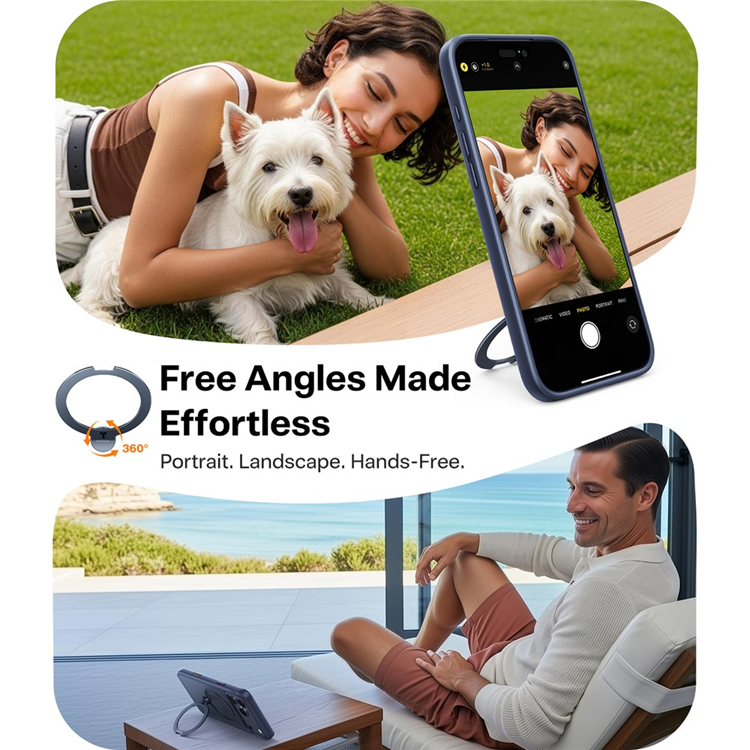 360° roterande ringhållare – Ger stabilt grepp och fungerar som ett kickstand för handsfree-visning i alla vinklar.