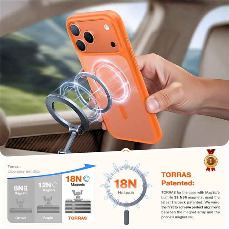 TORRAS mobilskal är skapat för att klara vardagens utmaningar. Med militärklassad stötdämpning och förstärkta kanter skyddas både skärm och kamera från oavsiktliga stötar och repor. De starka inbyggda magneterna gör det dessutom helt kompatibelt med MagSafe-laddning och tillbehör, så att du kan ladda trådlöst eller fästa mobilen i en magnetisk hållare utan problem. Detta är skalet som förenar säkerhet, komfort och modern livsstil.