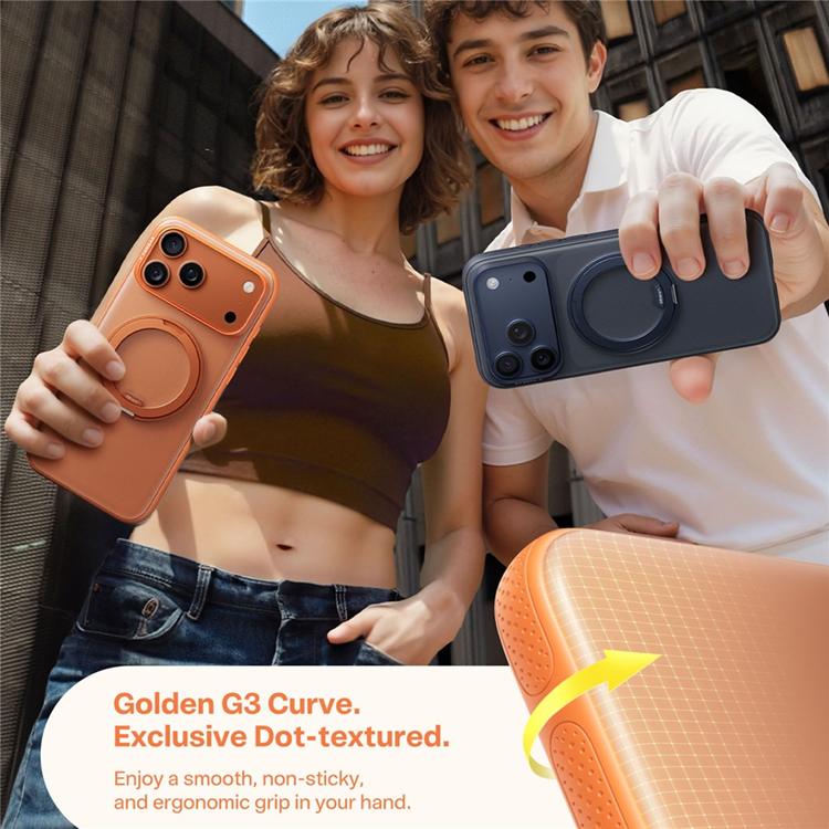 Skalet har ett inbyggt 360° stativ i manganstål som enkelt roteras för optimal visningsvinkel – perfekt för videosamtal, serier eller surf. Med militärklassad TPU+PC-konstruktion, explosionssäker baksida och 3D-stötdämpande hörn har skalet klarat falltest från 3,66 m i 26 vinklar, vilket skyddar din mobil mot stötar, fall och repor.