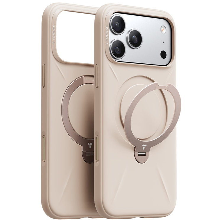 TORRAS iPhone 17 Pro Mobilskal MagSafe Ostand Q Pro Kickstand Liquid Silikon + PC - Ökenguld