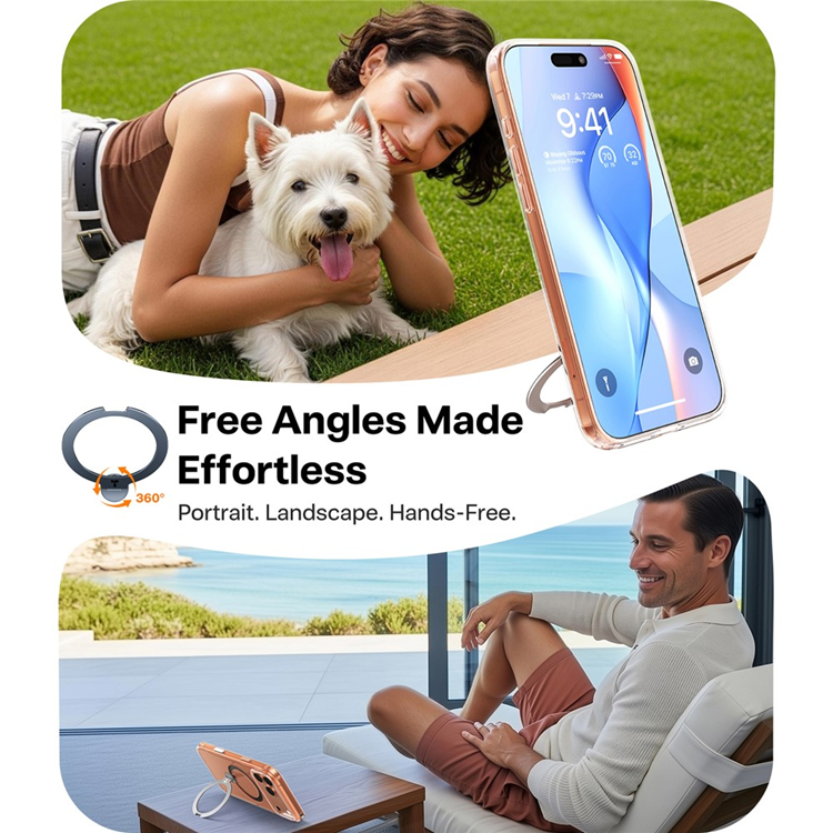 360° roterande ringhållare – Ger stabilt grepp och fungerar som ett kickstand för handsfree-visning i alla vinklar.
