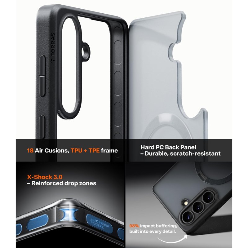 TORRAS Ostand Q3 Spin Series är det perfekta skyddet för din Samsung Galaxy S26. Med en innovativ design och funktioner som underlättar din vardag, erbjuder detta fodral både stil och säkerhet. Njut av handsfree-visning och en stark magnetisk koppling för enkel användning av tillbehör.