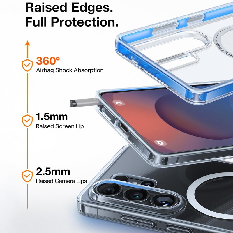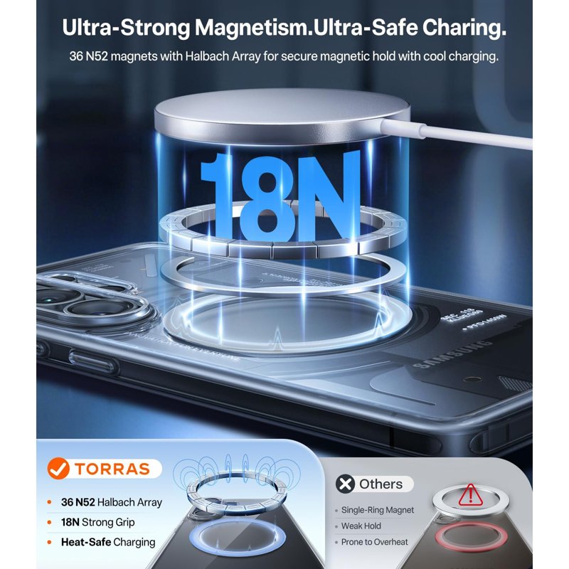 TORRAS Guardian-Mag Series Magnetic Case för Samsung Galaxy S26 Ultra erbjuder en perfekt kombination av stil och skydd. Med sin innovativa design och högkvalitativa material skyddar den din telefon mot stötar och fall. Den magnetiska funktionen säkerställer att ditt fodral sitter säkert på plats. Upplev tryggheten av militärklassat skydd och en elegant känsla i handen.