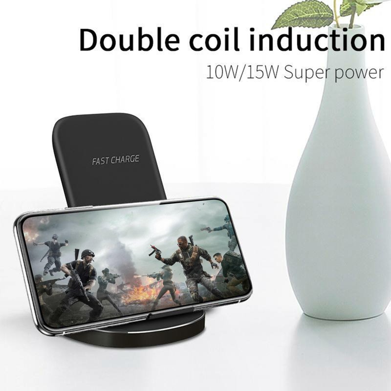 Denna trådlösa laddare erbjuder snabb och effektiv laddning med en maximal effekt på 15W. Du kan ladda din telefon på kortare tid och snabbt återgå till arbete eller nöje. Med en ergonomisk design kan du ladda din enhet både vertikalt och horisontellt.