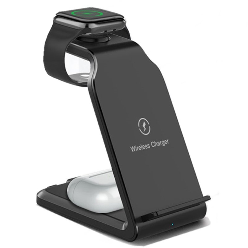 Trådlös laddare 3-i-1 för iPhone, iWatch, AirPods 15W - Svart