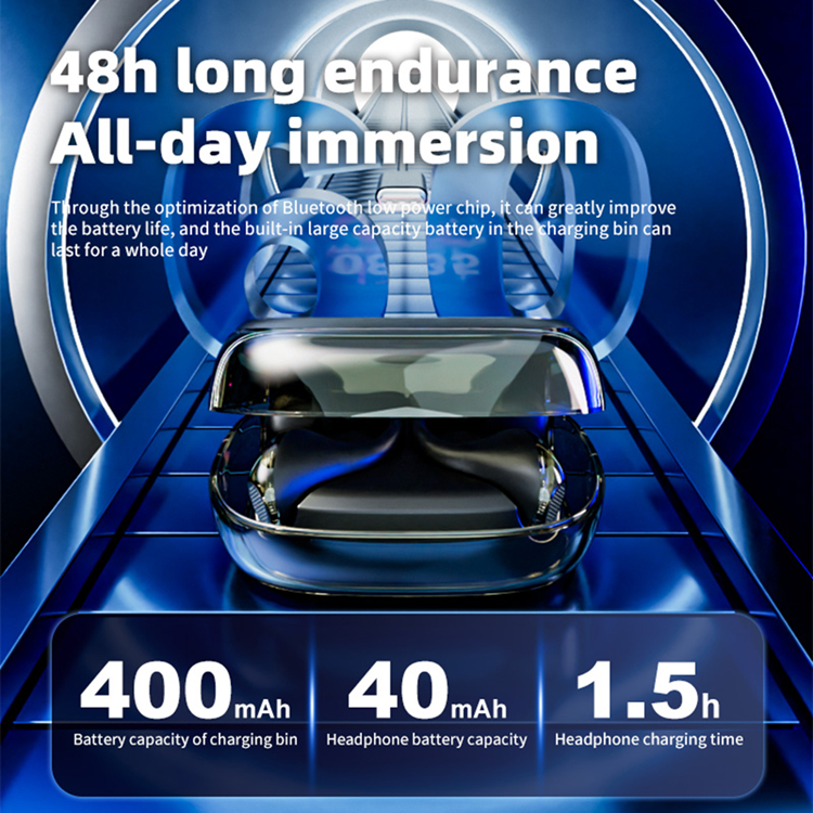 Ljudupplevelsen är både kraftfull och detaljerad tack vare avancerad ljudteknik som skapar ett fylligt, rumsligt ljud. Den smarta laddningsboxen med AI-styrd färgskärm ger dig enkel kontroll med ett enda tryck, medan den långa batteritiden säkerställer att hörlurarna hänger med i din livsstil utan avbrott. Stabil Bluetooth-anslutning gör upplevelsen smidig, oavsett om du lyssnar på musik, tittar på video eller pratar i telefon.