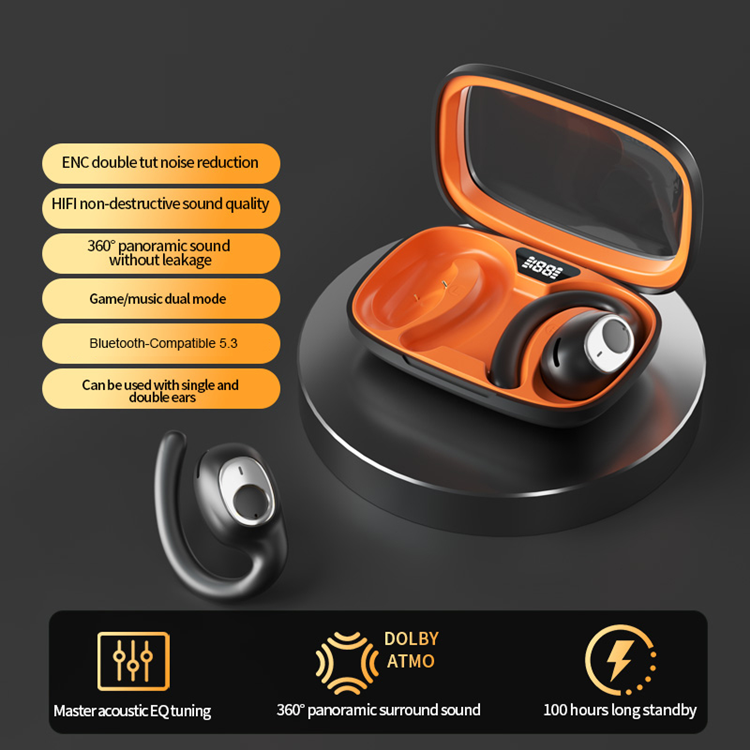 Trådlösa Bluetooth-Hörlurar Open-Ear Hook Sports IPX5 Vattentäta ENC Noise Cancellation X5 - Svart+Orange