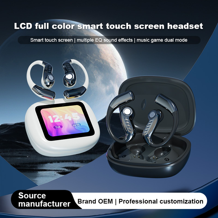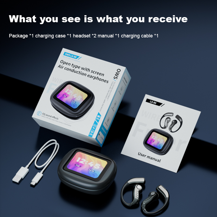 Trådlösa Bluetooth-Hörlurar Sports Open Ear Hook med 2.4'' Pekskärm Laddningsfodral LX-90 - Svart