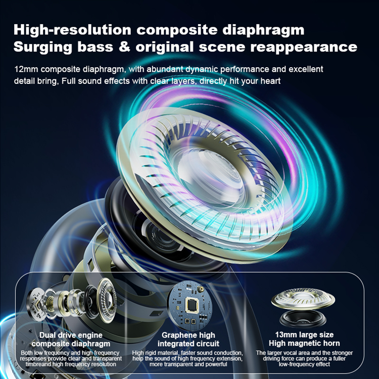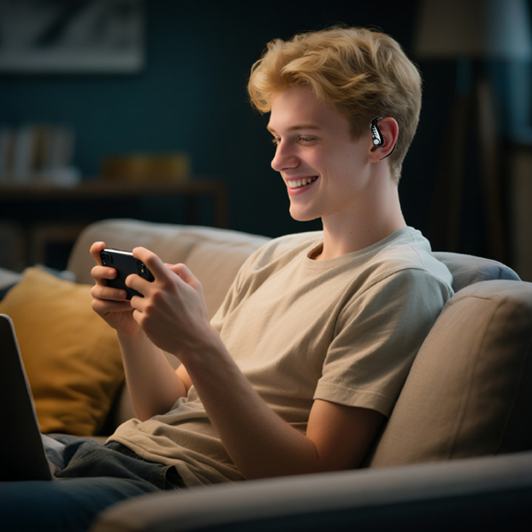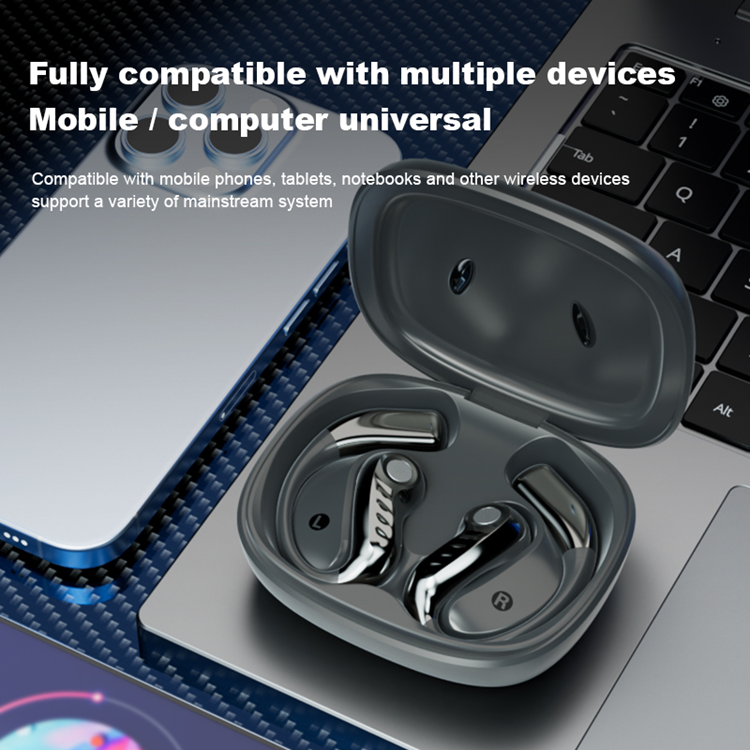 Upplev friheten med öppna trådlösa hörlurar som låter dig njuta av musik samtidigt som du har full uppmärksamhet på omgivningen. Den öppna open-ear-designen ger en naturlig och luftig ljudupplevelse utan att stänga ute världen runt omkring dig. Tack vare den lätta och ergonomiska konstruktionen sitter hörlurarna bekvämt och säkert hela dagen, perfekt för arbete, promenader, träning och pendling.