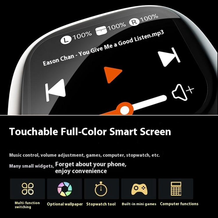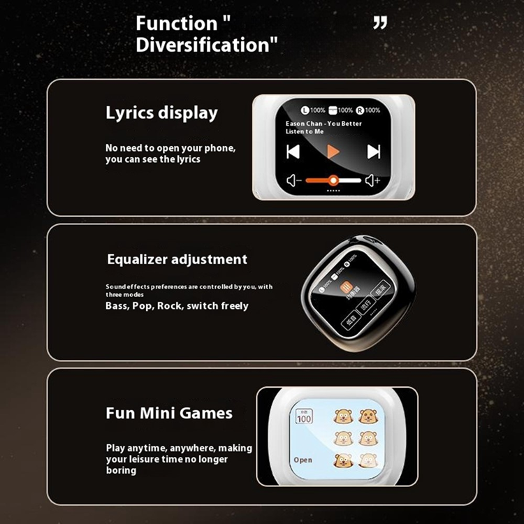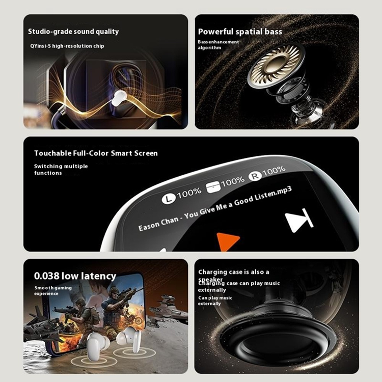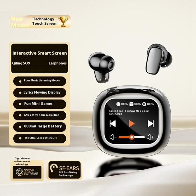 Upptäck en helt ny nivå av bekvämlighet och innovation med S09 – trådlösa hörlurar som kombinerar smart teknik, kraftfullt ljud och elegant design. Den färgrika pekskärmen på laddningsetuiet gör att du enkelt kan styra musik, volym, spelläge, tidtagning och till och med använda miniräknare – allt utan att ta upp mobilen. Tack vare den avancerade brusreduceringschipet kan upp till 99,44 % av omgivningsljudet filtreras bort, vilket ger dig en ostörd och uppslukande lyssningsupplevelse var du än befinner dig.