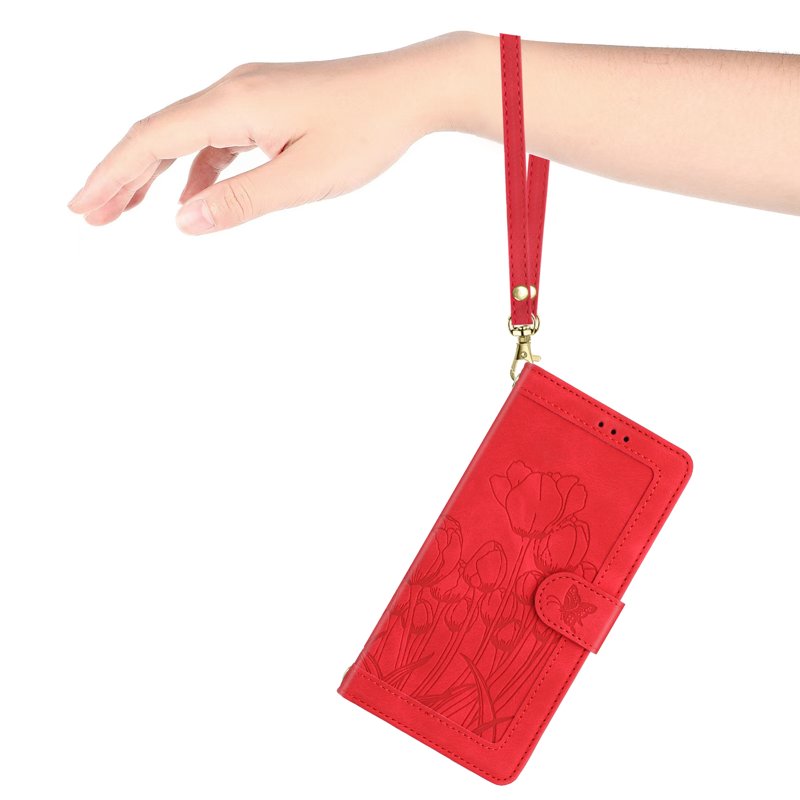 Detta mobilskal kombinerar stil och funktionalitet. Med ett elegant tulpanmönster och praktiska funktioner är det det perfekta valet för att skydda din telefon. Det erbjuder gott om förvaring för kort och kontanter, samt en inbyggd ställfunktion för bekväm visning. Tillverkat av hållbart material ger det också utmärkt skydd mot stötar.