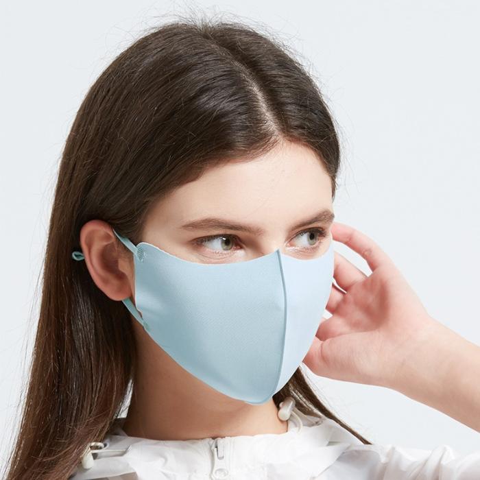Masken har praktiska band som träs runt öronen och kan justeras till önskad längd så att den passar och sitter bekvämt. Den återanvändbara masken tillåter upprepad användning eftersom den kan tvättas för hand och sedan återanvändas.
