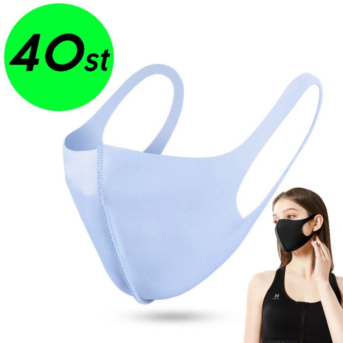 40 Pack Tvättbar mask Munskydd Skyddsmask Blå