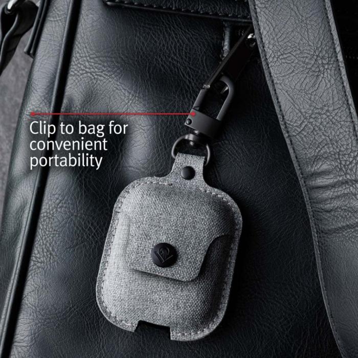 AirSnap är ett fodral av slitstark Twill som är skräddasydda för att skydda dina AirPods och samtidigt alltid ha dem nära till hands. Förvara dina Airpods i laddningsfodralet och lägg sedan ner det i AirSnap fodralet, försegla med knappen och dina dyrbara hörlurar är i säkert förvar men ändå lättillgängliga.