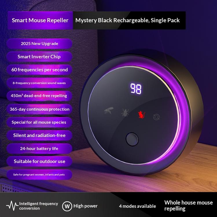 Ultraljudsskadedjursavvisare Uppladdningsbar Intelligent Frekvensvariation 4 Lägen Gnagare Myggmedel - Svart