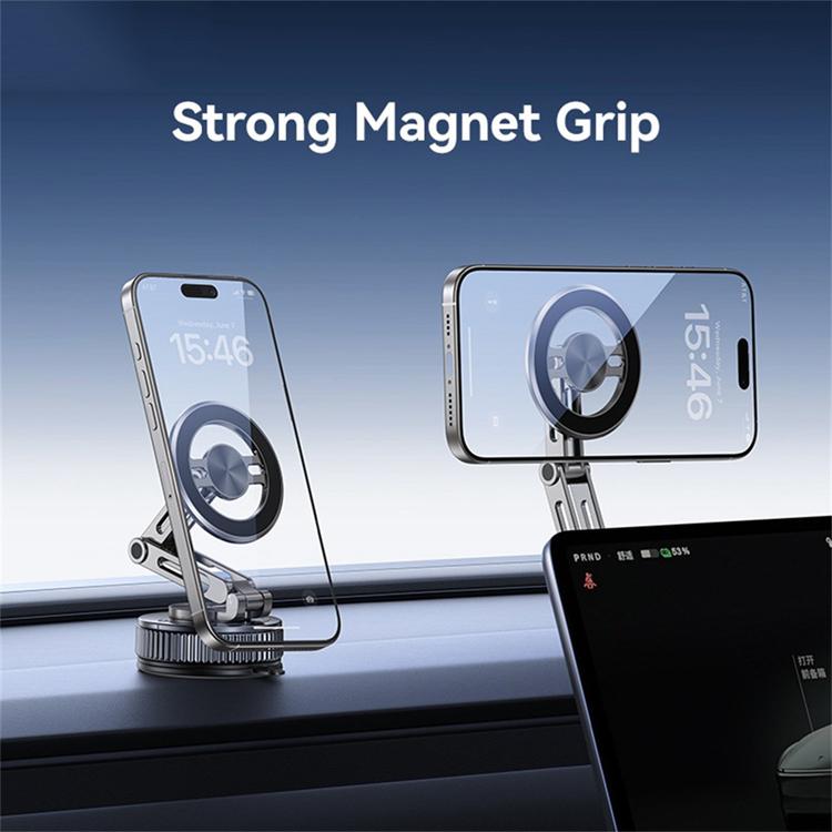 Den innovativa vakuumsugtekniken med one-touch-låsning ger ett stabilt grepp på släta ytor utan att glida eller lossna. De kraftfulla N52-magneterna håller mobilen stadigt på plats även vid snabba rörelser och ojämna vägar. Tack vare den slitstarka stödstången i zinklegering klarar hållaren daglig användning och frekventa justeringar utan att tappa stabilitet.