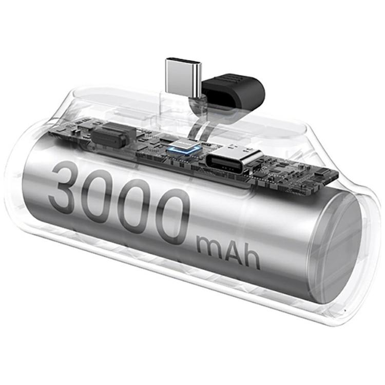 USAMS Mini Tail Plug Bärbar Powerbank 3000mAh USB-C PB79 - Silver