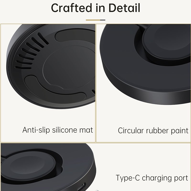 Detta smartwatch laddningsställ är designat för att enkelt ladda din Apple Watch. Den inbyggda magnetiska laddaren gör det möjligt att justera vinkeln fritt. Laddningsstället är både praktiskt och stilrent, perfekt för nattduksbordet eller kontoret.