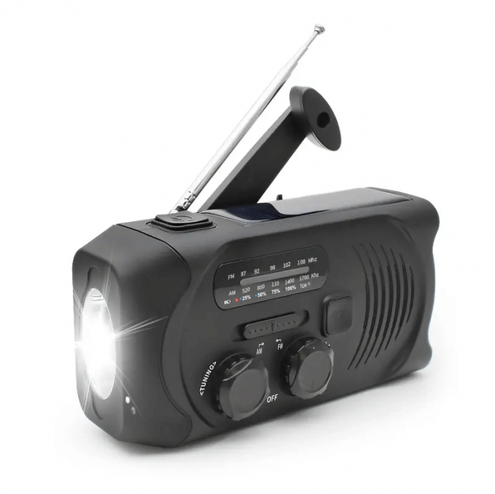 [1-Pack] Vevradio med Solceller, ficklampa och Powerbank 2000mAh