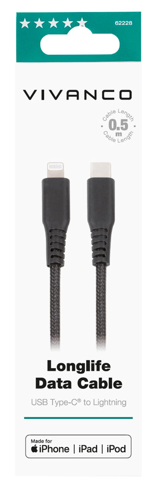 Handla denna produkt Vivanco Longlife USB-C/Lightning kabel MFI 0.5m Svart