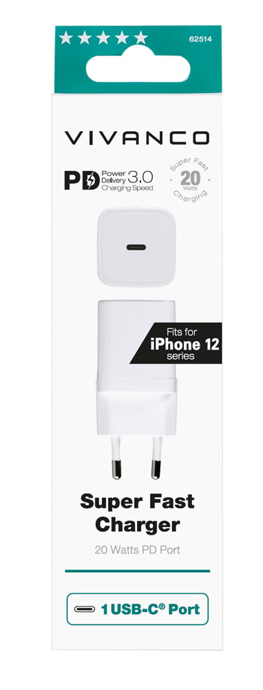 Vivanco Snabb 1xUSB-C PD 3.0 20W Hemladdare Vit