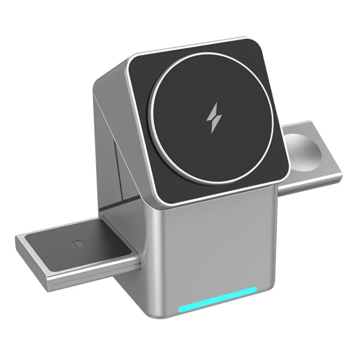 Gör laddningen enklare, snyggare och mer organiserad med W10 3-i-1 magnetisk trådlös laddare. Den är skapad för dig som vill ha en smidig lösning för vardagen utan att behöva hantera flera olika kablar och laddare. Med plats för mobil, smartwatch och earbuds i en och samma enhet får du en renare skrivbordsyta och en mer bekväm laddningsrutin, både hemma och på kontoret. Den magnetiska funktionen hjälper mobilen att ligga stabilt vid laddning, medan den roterbara designen gör det lätt att hitta en bekväm vinkel för samtal, videor eller notiser. Ett smart val för dig som vill kombinera snabb laddning med modern design.