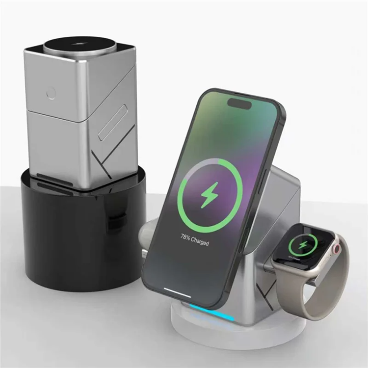 Gör laddningen enklare, snyggare och mer organiserad med W10 3-i-1 magnetisk trådlös laddare. Den är skapad för dig som vill ha en smidig lösning för vardagen utan att behöva hantera flera olika kablar och laddare. Med plats för mobil, smartwatch och earbuds i en och samma enhet får du en renare skrivbordsyta och en mer bekväm laddningsrutin, både hemma och på kontoret. Den magnetiska funktionen hjälper mobilen att ligga stabilt vid laddning, medan den roterbara designen gör det lätt att hitta en bekväm vinkel för samtal, videor eller notiser. Ett smart val för dig som vill kombinera snabb laddning med modern design.
