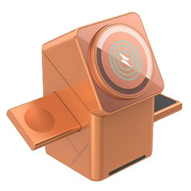 W10 3-i-1 Magnetisk Trådlös Laddare 15W För iPhone Och Samsung Snabbladdningsställ - Orange