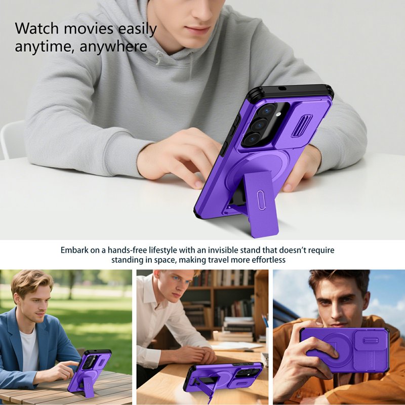 WANLONFENG Mobilskal för Samsung Galaxy S26 Magnetiskt Kickstand PC + TPU - Lila