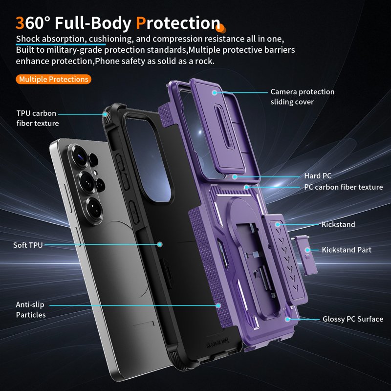 WANLONFENG Mobilskal för Samsung Galaxy S26 Ultra PC + TPU Kickstand - Lila