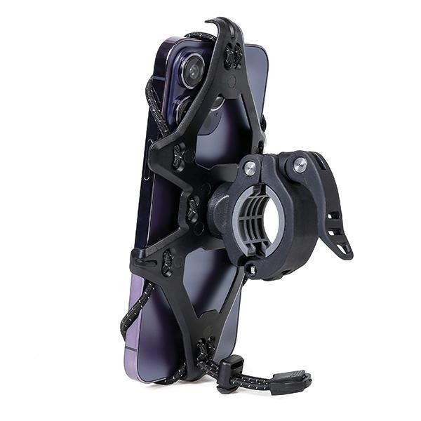 Denna hållare erbjuder enastående flexibilitet och hållbarhet. Med elastiska snören kan den monteras stabilt och säkert på styret. Den skyddar din smartphone från oavsiktliga fall och säkerställer att din cykel förblir intakt.