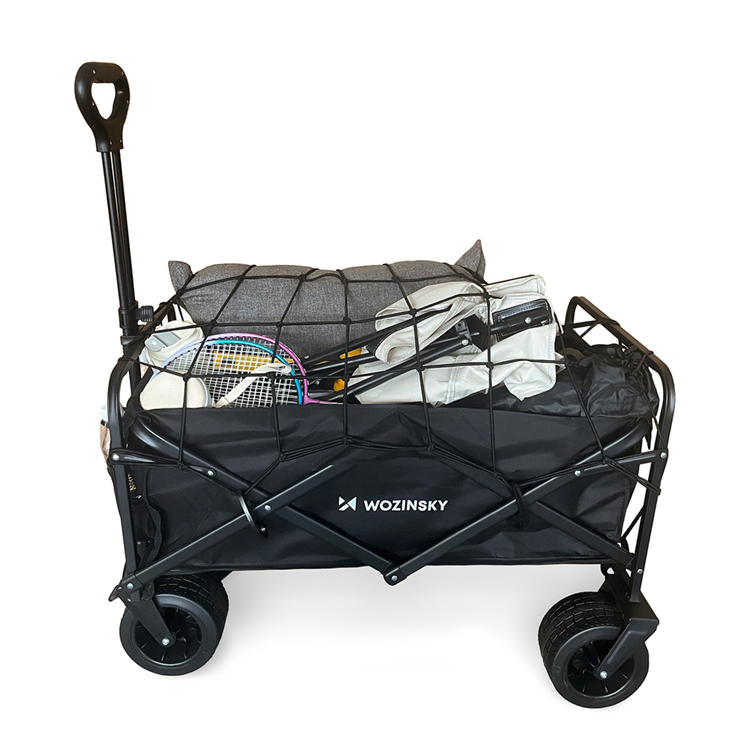 Wozinsky Strand Trädgårdsvagn Slitstark Breda Hjul med Säkerhetsnät upp till 100 kg - Svart
