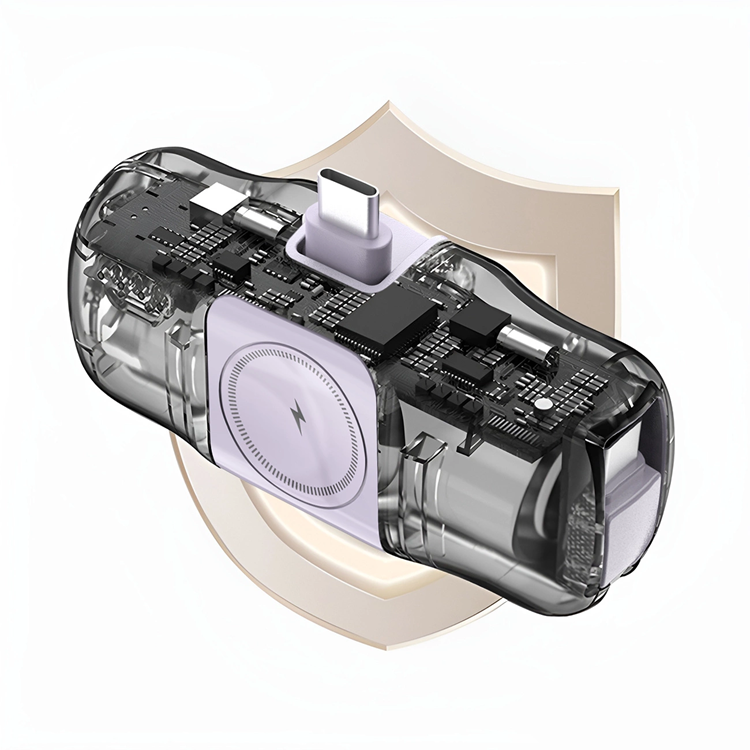 Wozinsky WF16-YCS Mini Powerbank 15W 5000mAh med inbyggd USB-C-Kabel Och Apple Watch-Laddare - Lila