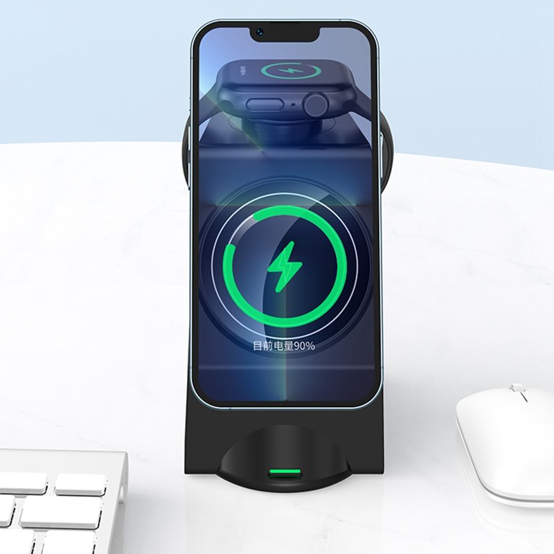 WT158 är en smart 3-i-1 trådlös laddare som effektivt laddar din mobiltelefon, hörlurar och klocka samtidigt. Den har en inbyggd automatisk identifiering av QC och PD protokoll, vilket säkerställer snabb och säker laddning. Med flera skyddsfunktioner kan du lita på att dina enheter är i trygga händer.