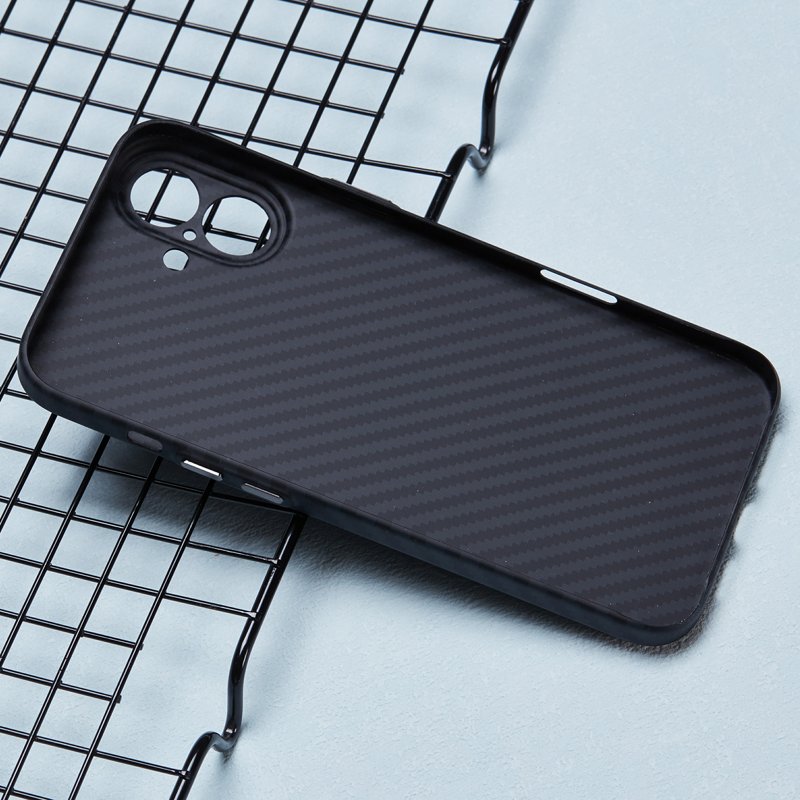 - Slät yta: Kolfibertexturen är lätt att hålla ren och gör det enkelt att ta ut och sätta in telefonen i fickan.